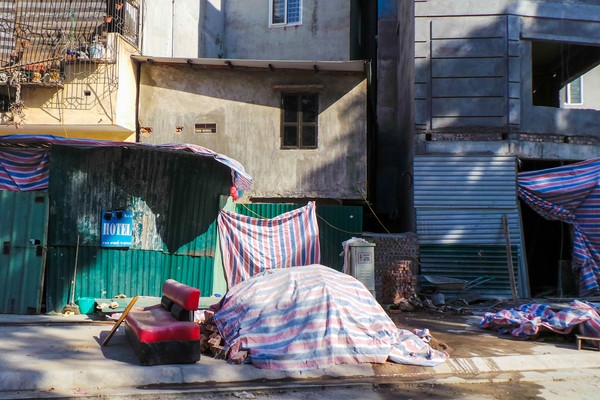 Nhiều gia đình vẫn sinh sống trong những ngôi nhà bị cắt xén trên miếng đất bị giải phóng mặt bằng để mở đường tạo nên cảnh dị dạng, mất mỹ quan đô thị.