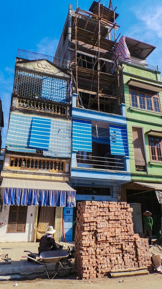 Những ngôi nhà sau khi mở đường thành nhà mặt phố nên chủ nhà tranh thủ "nối" thêm vài tầng để tạo giá trị thương mại ở tuyến phố mới mở.