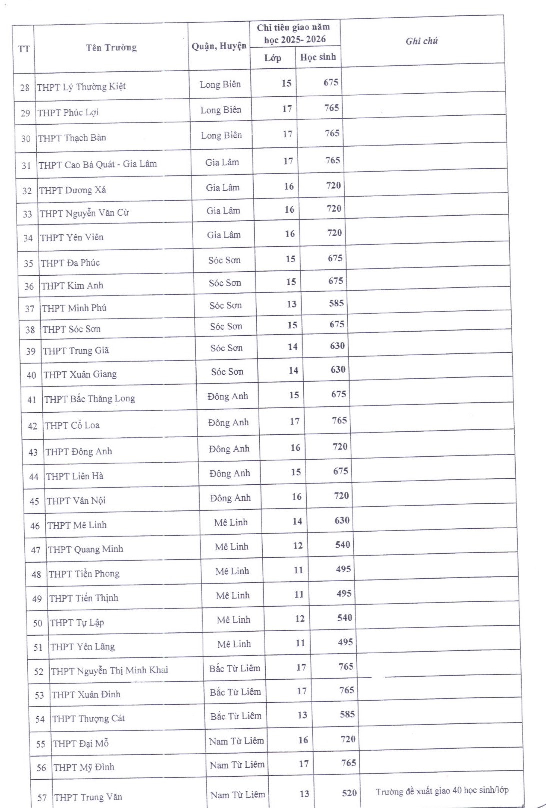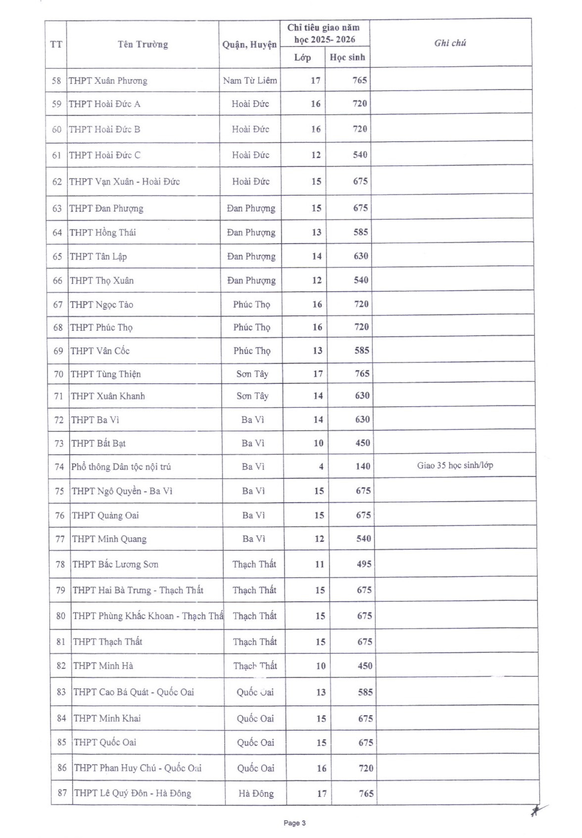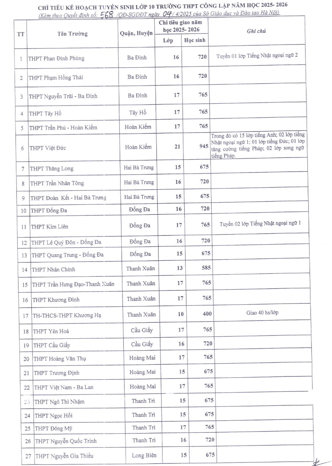 Dưới đây là chỉ tiêu tuyển sinh của các trường THPT công lập năm học 2025-2026 của Hà Nội: