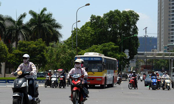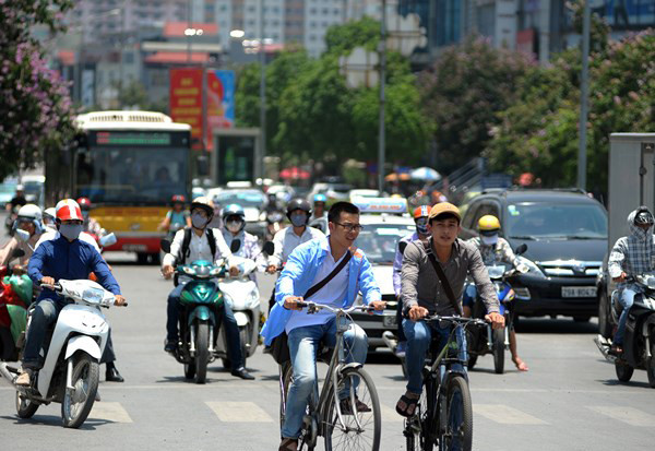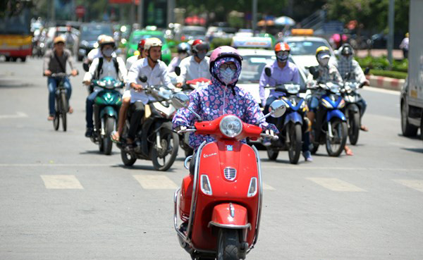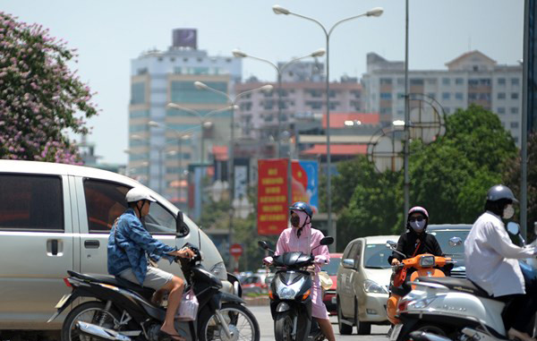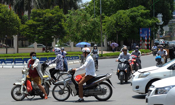Phải đến ngày 31/5-1/6, khu vực Hà Nội mới có một đợt giảm nhiệt nhẹ sau đó lại tiếp tục nắng gắt. Người tham gia giao thông nên trang bị mũ, dụng cụ chống nắng đầy đủ cho mình.