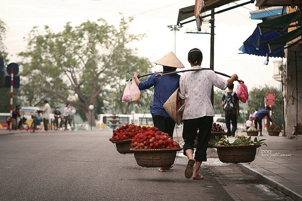 Những thứ bạn muốn mua từ phở, hoa quả đến quần áo, lược, dây buộc tóc, đồ dùng gia đình sẽ dễ dàng bắt gặp trên đường với những gánh hàng rong được giữ thăng bằng trên đôi quang gánh.