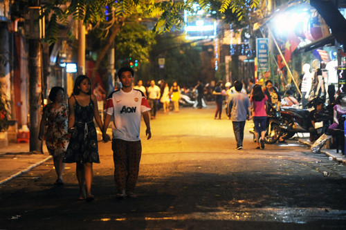 Phố Đào Duy Từ thông thoáng trong giờ đi bộ, từ 19h đến 24h.