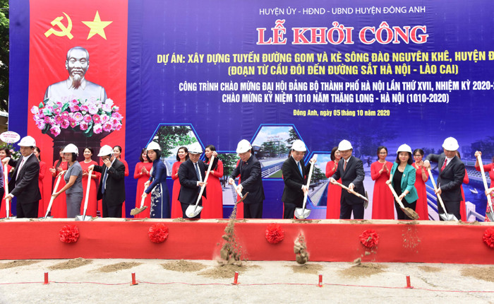 Các dự án được huyện khởi công gồm: Xây dựng tuyến đường gom và kè sông Đào Nguyên Khê, đoạn từ Cầu Đôi đến đường sắt Hà Nội - Lào Cai; xây dựng Trường mầm non chất lượng cao huyện Đông Anh và xây dựng nhà thi đấu đa năng thuộc dự án khu cây xanh thể dục thể thao huyện Đông Anh.
