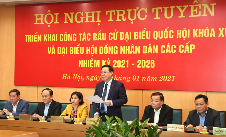 Chiều 23/1, Ban Thường vụ Thành ủy Hà Nội tổ chức Hội nghị trực tuyến triển khai công tác bầu cử đại biểu Quốc hội khóa XV và đại biểu HĐND các cấp nhiệm kỳ 2021- 2026.