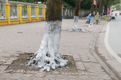Dạo quanh phố phường Hà Nội, nhiều gốc cây được quét trắng vôi, được mặc áo mới nhưng tất cả đều có lí do riêng của nó