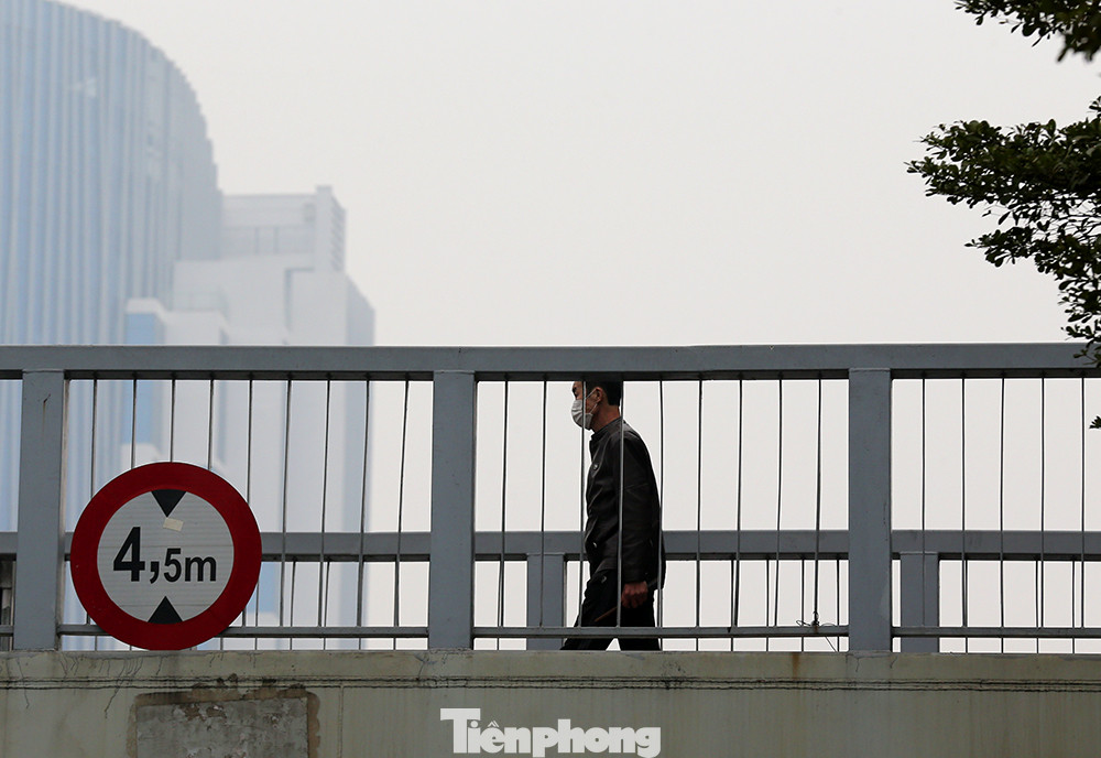 Toà Keangnam “gần như mất hút” trong sương mù.
