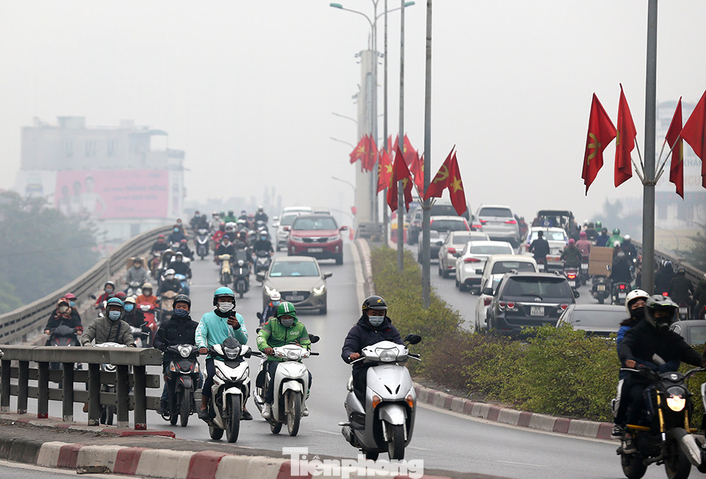 Trời mù mịt vào sáng nay khiến nhiều người tham gia giao thông trên đường Trường Chinh hướng đi về Ngã Tư Vọng hạn chế tốc độ