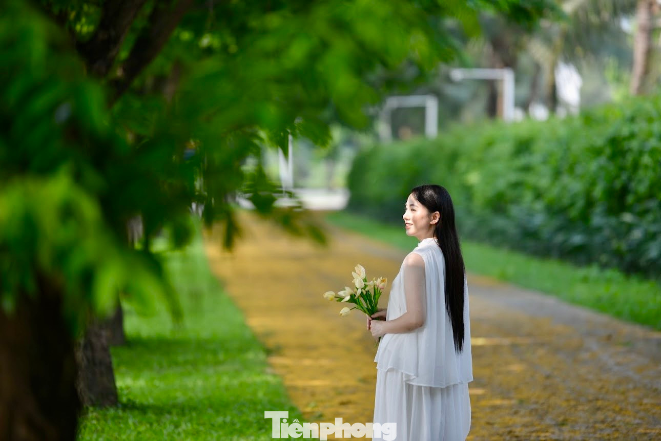 | Những góc phố, vỉa hè phủ vàng hoa giáng hương tạo khung cảnh lãng mạn, yên bình. |