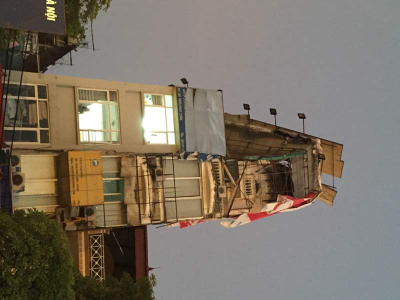 Trụ quảng cáo lớn trên đường Đại Cồ Việt bị gió giật đổ Ảnh: Thanh Hà