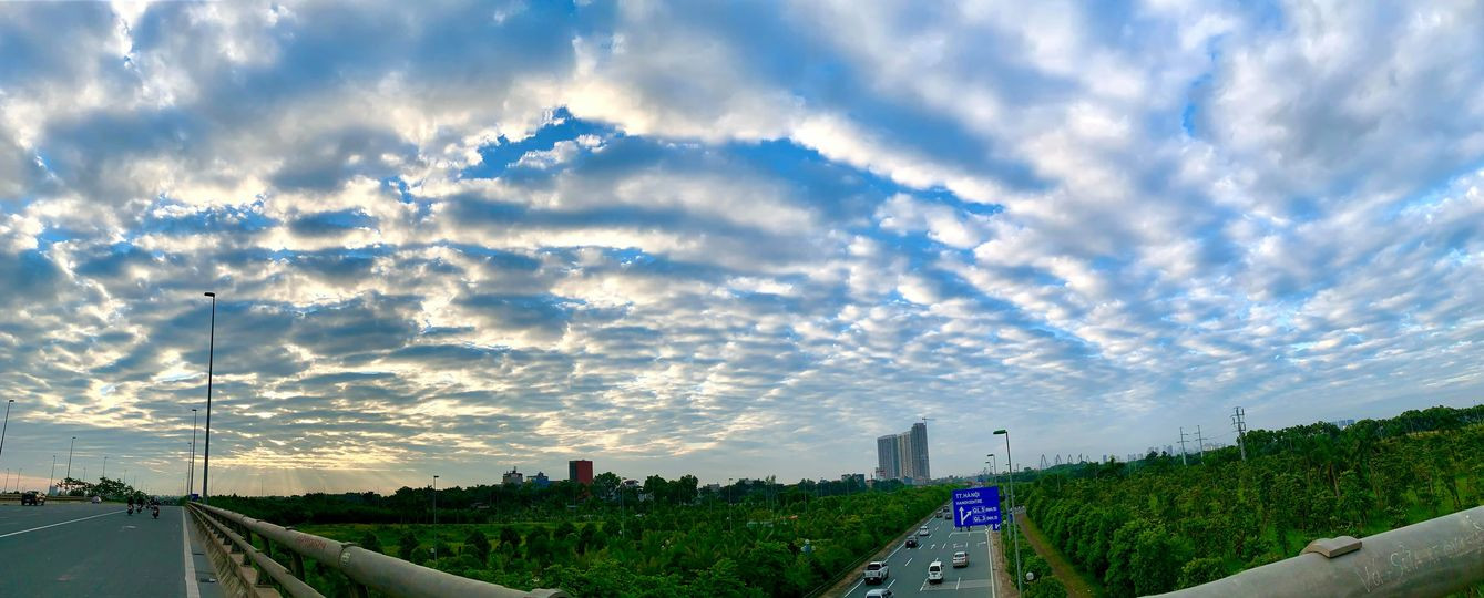 Với một số bạn phải đi học hay đi làm buổi sáng, chứng kiến cảnh trời đẹp lung linh thế này cũng nhanh tay chụp lại khoảnh khắc mây trắng trời xanh (Ảnh: Trần Hoài Linh)