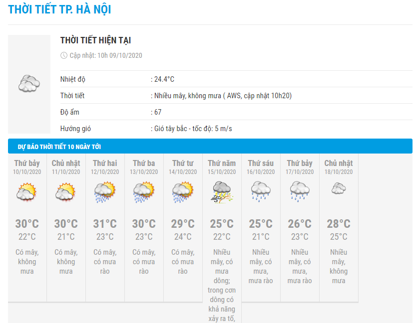 Thời tiết Hà Nội trong những ngày cuối tuần (Ảnh chụp màn hình)