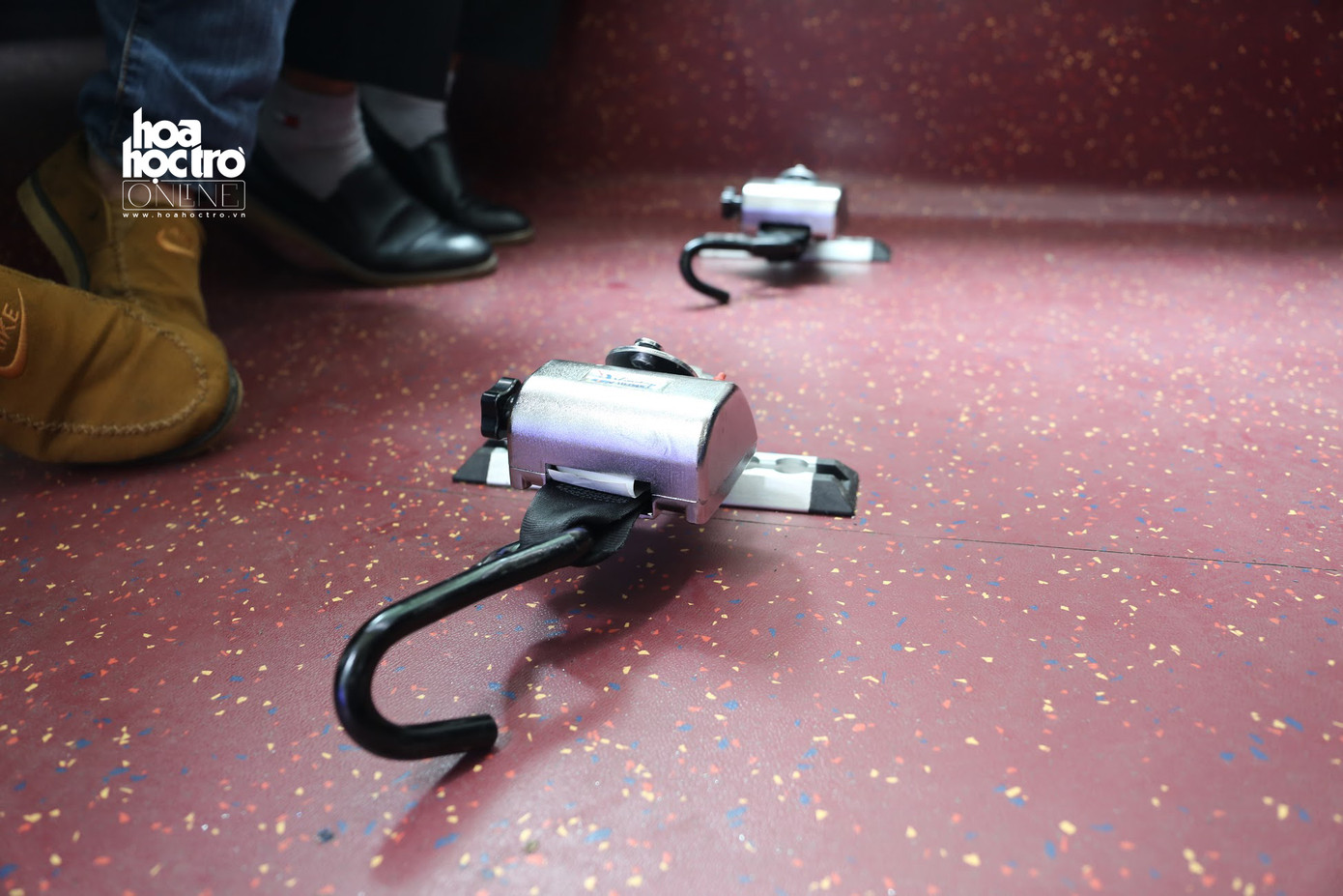 Thiết bị được lắp trên xe để hỗ trợ giữ xe lăn cho người khuyết tật.