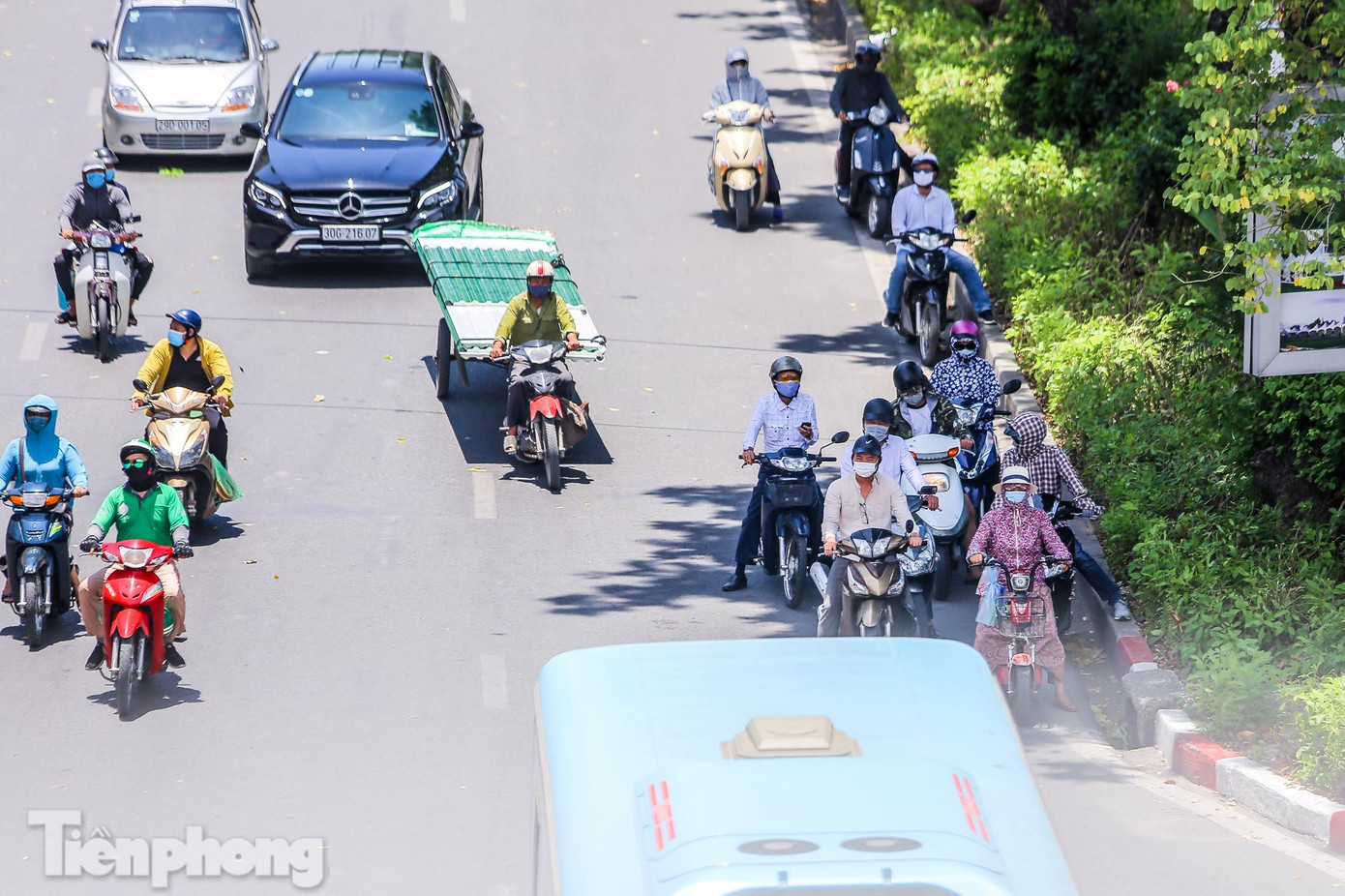 | Mặc dù là làn ô tô, nhưng nhiều phương tiện xe máy bất chấp đi vào vì có bóng râm từ cầu đường sắt trên cao trên đường Nguyễn Trãi. |