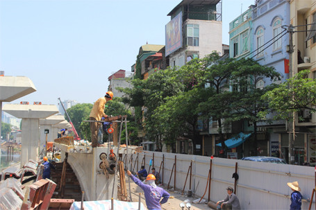 Công nhân của công trường tuyến đường sắt Cát Linh - Hà Đông.