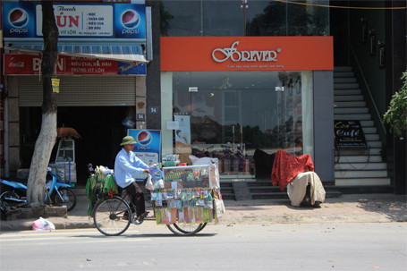 Người bán hàng rong rảo xe giữa trưa nắng.