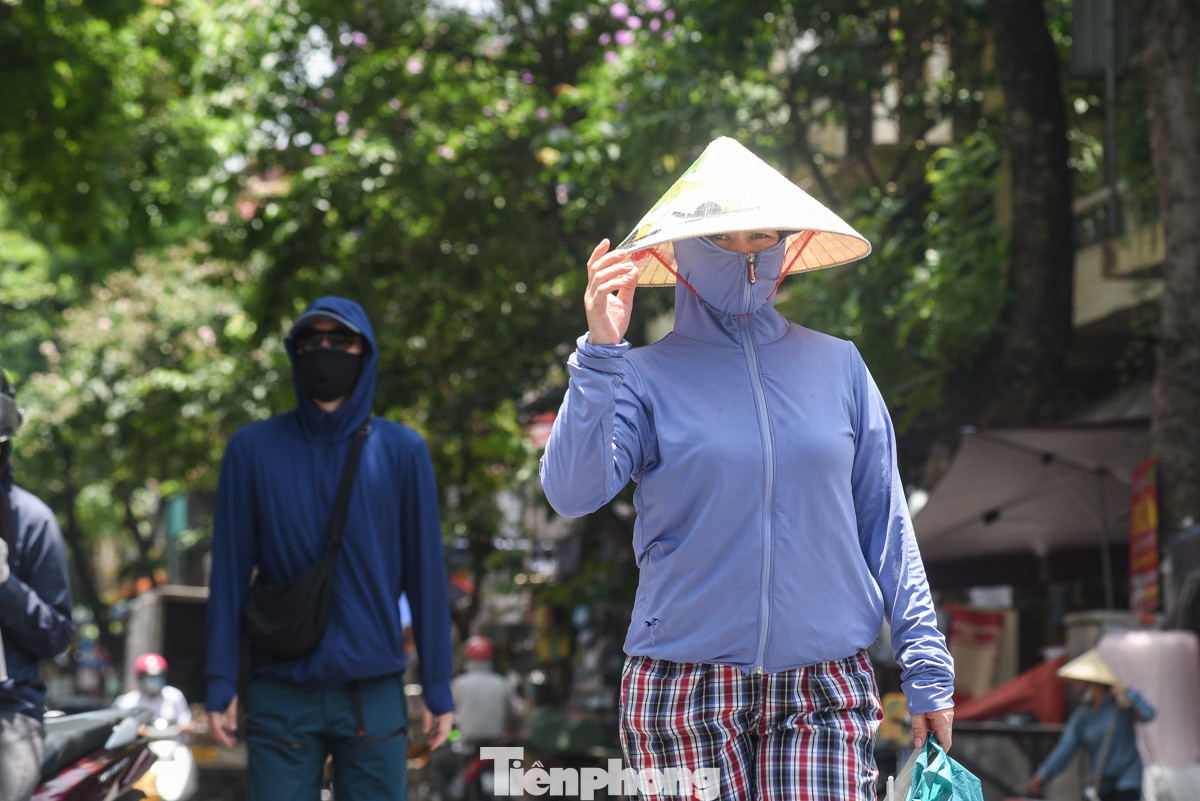 | Những người làm việc ngoài trời chịu ảnh hưởng nhiều nhất của nắng nóng. Làm nghề bán hàng rong, bà Lê Thị Thu (quê Bắc Ninh) cho biết: "Thời tiết hôm nay quá oi bức khiến những người bán hàng như chúng tôi vừa mệt vừa không có khách. Trưa nắng nóng, hình như mọi người đều đóng cửa không muốn ra đường" |