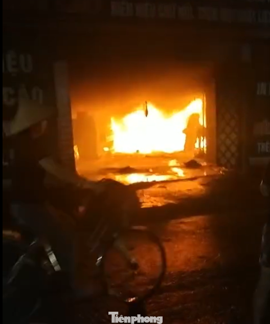 | Từ xa, người dân nhìn thấy cột khói đen cao hơn chục mét bốc lên từ cửa hàng kèm những tiếng nổ lớn. |