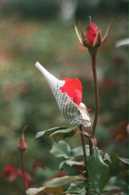 Hầu hết các bông hoa hồng đều được chụp mũ giấy để không bung nở quá sớm.