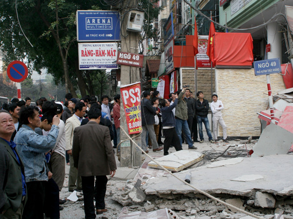 Một phần tòa nhà còn đổ sang ngõ 49 và khu tập thể 51. Gần khu vực tòa nhà đổ sập còn có một trường học và nhiều cơ quan nhà nước.