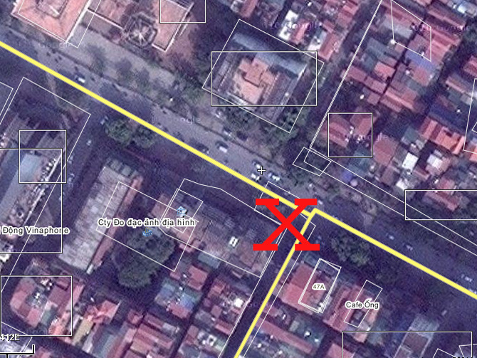Dấu X là khu vực có tòa nhà 5 tầng bị đổ.