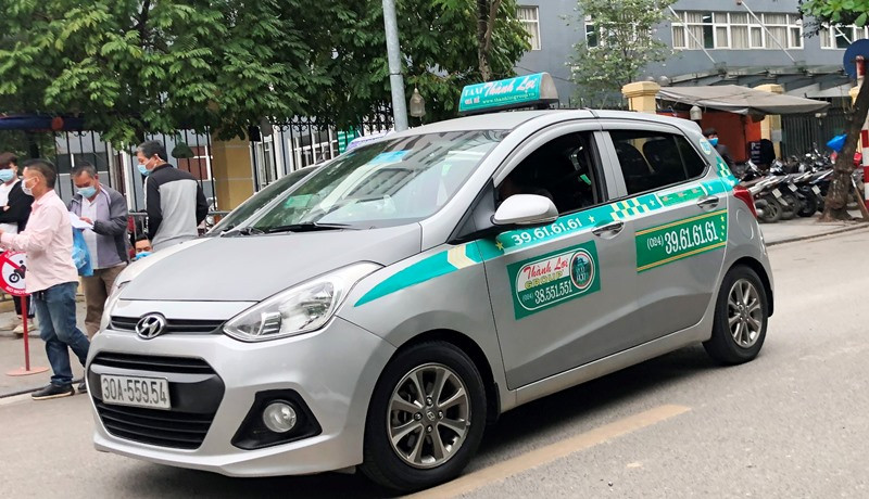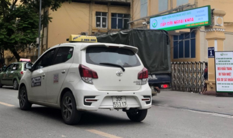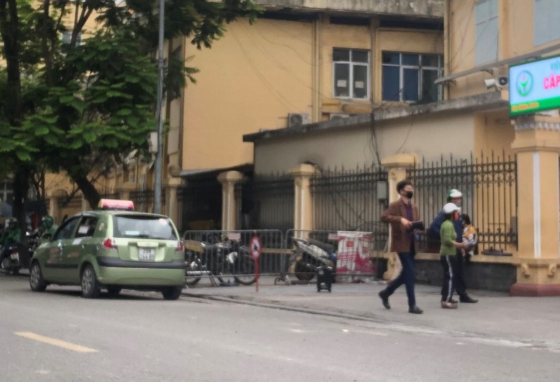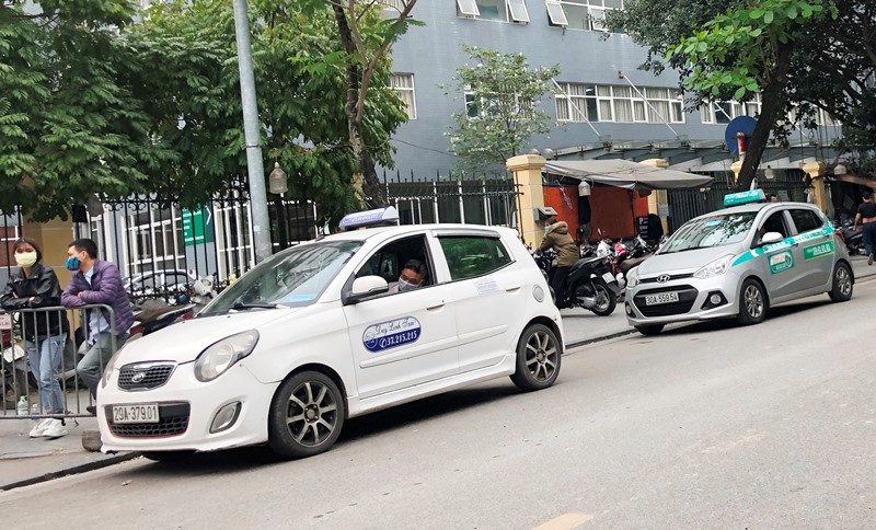 Các Taxi dừng và trả khách trước cửa khoa cấp cứu Bệnh viện Việt Đức
