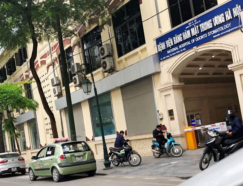 Taxi dừng đỗ đón chờ khách trước Bệnh viện Răng Hàm Mặt Trung ương Hà Nội.