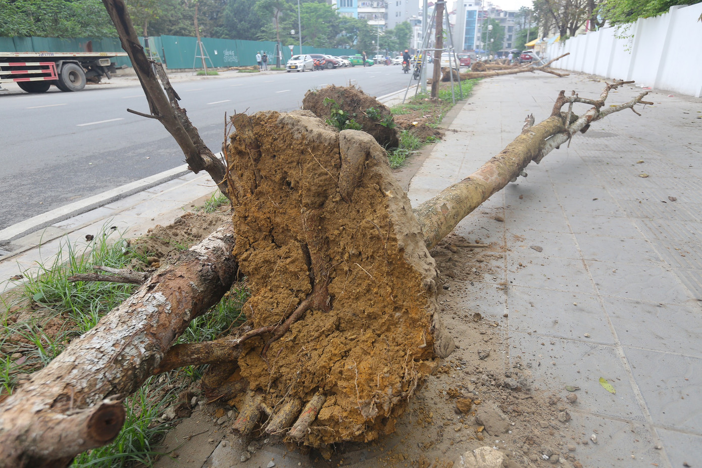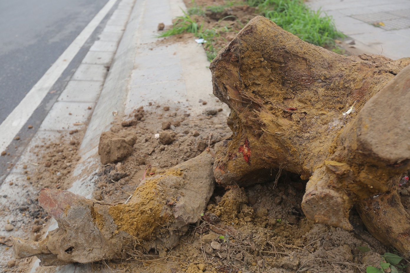 | Đáng chú ý, hàng loạt cây xanh trồng trên tuyến đường này sau khi bị nhổ lên, có thể thấy đều không có biểu hiện sự sống. Ảnh: Duy Phạm. |