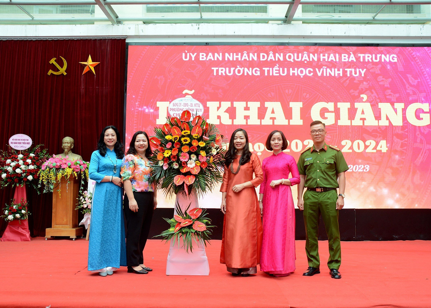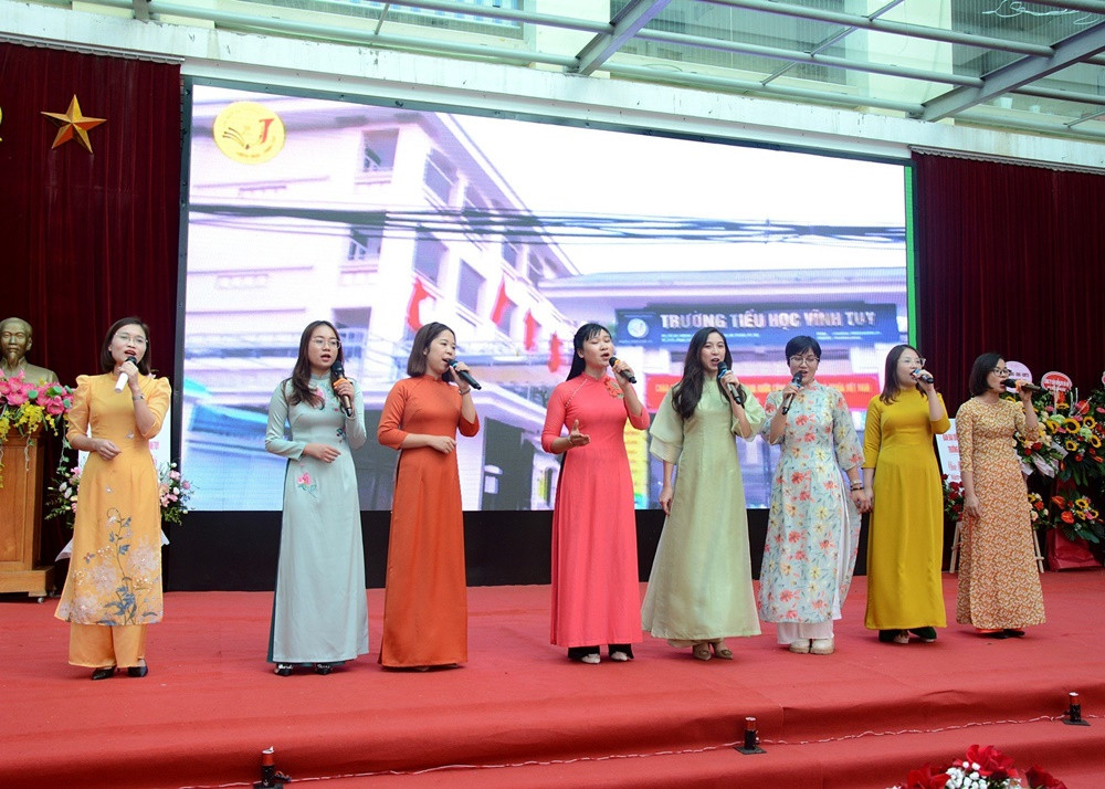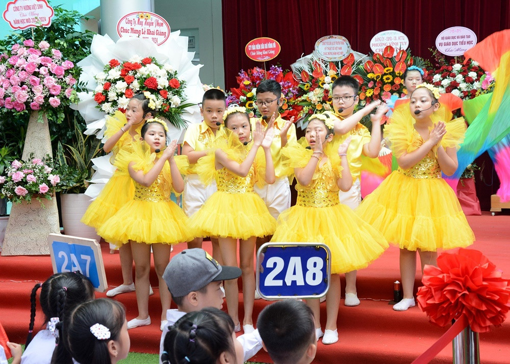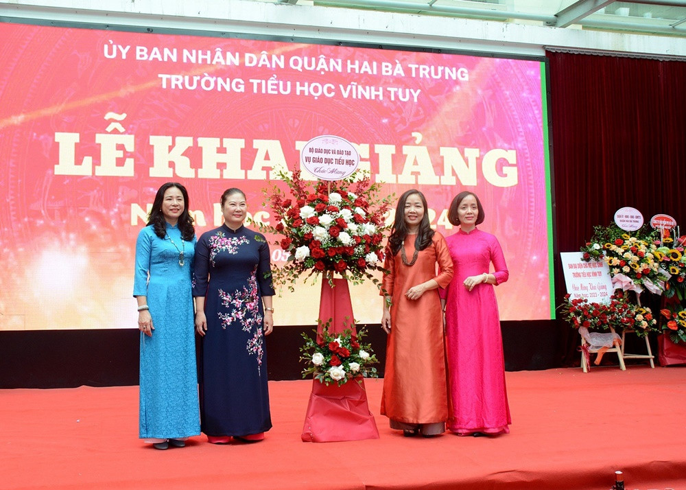 Lễ khai giảng năm nay của trường Tiểu học Vĩnh Tuy, Hà Nội còn được đón một vị khách mời đặc biệt là Tiến sĩ Trịnh Hoài Thu, Phó Vụ trưởng Vụ Giáo dục tiểu học Bộ GD&ĐT cùng nhiều vị đại biểu khác.