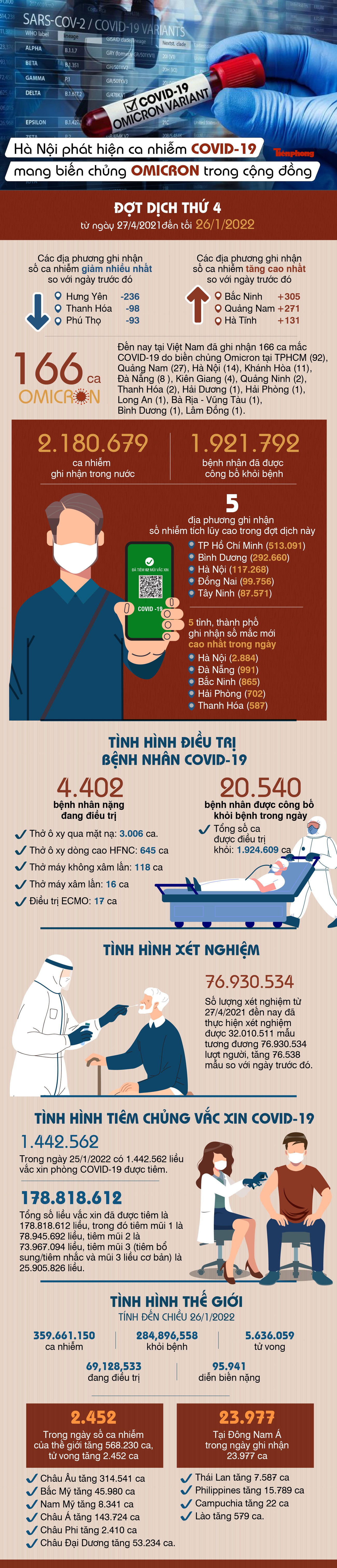TPO - Kể từ đầu dịch đến nay Việt Nam có 2.187.481 ca nhiễm, đứng thứ 28/224 quốc gia và vùng lãnh thổ, trong khi với tỷ lệ số ca nhiễm/1 triệu dân, Việt Nam đứng thứ 143/224quốc gia và vùng lãnh thổ (bình quân cứ 1 triệu người có 22.161 ca nhiễm).