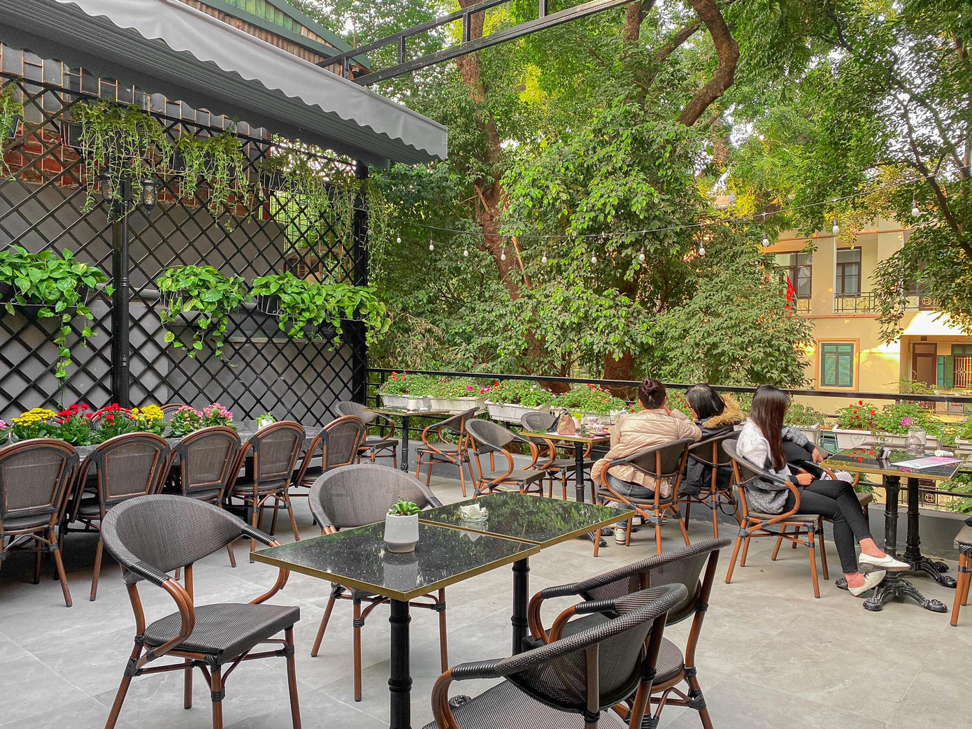 Vì không gian chỉ có 1 tầng, quán phù hợp cho những nhóm nhỏ dưới 5 người. Bên ngoài có những chiếc ghế và bàn gỗ phù hợp cho các bạn thích ngắm phố xá và dòng người nườm nượp qua lại.