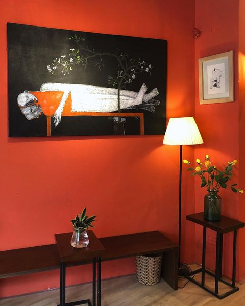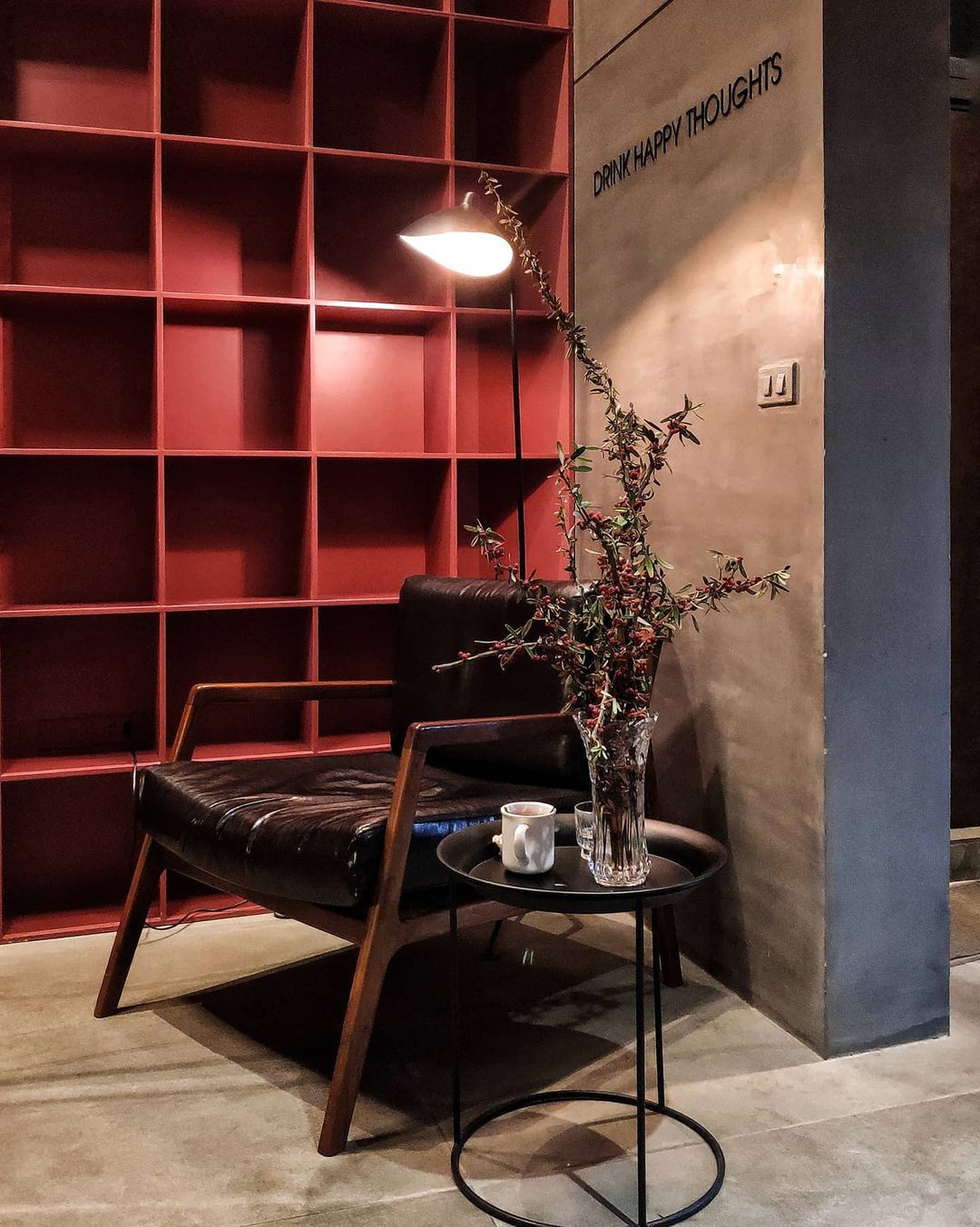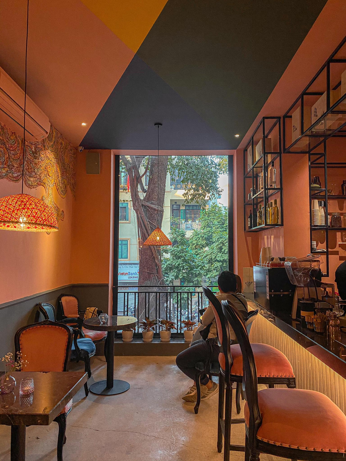 Vẫn ở quận Hoàn Kiếm, ghé sang phố Hạ Hồi, bạn sẽ bị hấp dẫn bởi sắc đỏ nâu của quán ACID8 Specialty Coffee. Quán gồm 2 tầng, tầng 1 là không gian rộng được thiết kế lấy tone đỏ làm chủ đạo, tầng 2 là kiểu gác xép nhỏ.