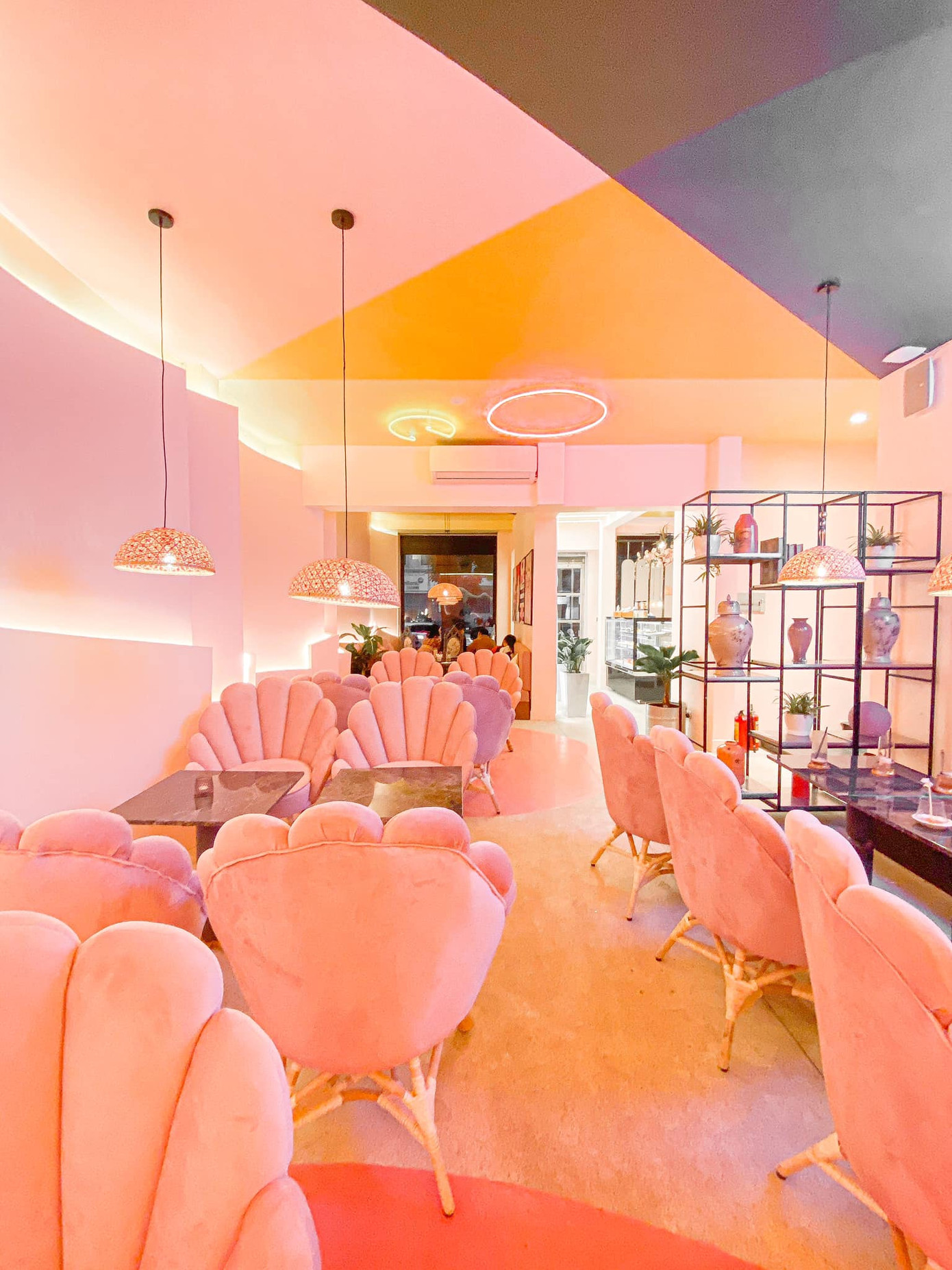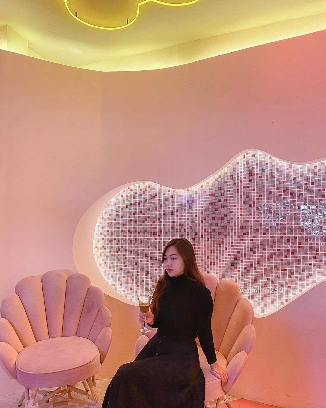 Nằm trên con đường cây xanh rợp bóng, bạn sẽ lập tức bị thu hút bởi sắc hồng của quán cà phê. Quán gồm ba tầng với không gian rộng: Tầng 1 và tầng 2 là không gian kín trong nhà, tầng 3 là không gian ngoài trời thoáng đãng. Mỗi tầng đều được thiết kế theo style riêng vô cùng độc đáo nên dù lấy tông màu hồng làm chủ đạo nhưng tổng thể nhìn không hề “bánh bèo” đâu nhé!