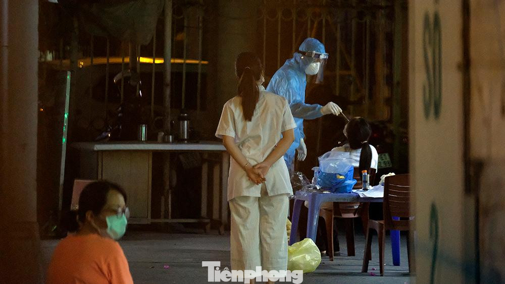 Lực lượng chức năng quận Đống Đa tiến hành xét nghiệm COVID-19 cho các đối tượng liên quan.