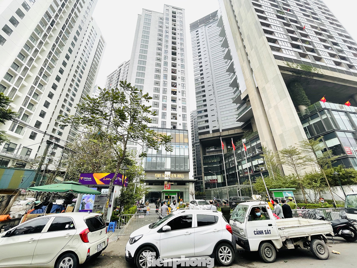 Cơ quan chức năng đã dựng rào chắn, tiến hành phong toả chung cư Garden Hill, địa chỉ tại 99 Trần Bình (Mỹ Đình 2, Nam Từ Liêm, Hà Nội) để phòng chống dịch bệnh COVID-19.