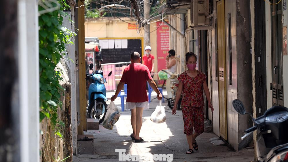 Hội phụ nữ phường túc trực dùng loa di động nhắc nhở người dân ở nguyên trong nhà và mỗi gia đình chỉ cử một người ra nhận đồ tiếp tế.