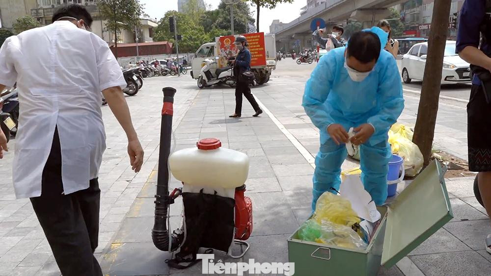 Lực lượng chức năng tiến hành phun khử khuẩn và tiến hành truy vết các trường hợp tiếp xúc gần với bệnh nhân.