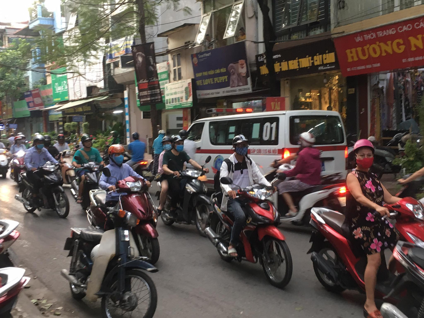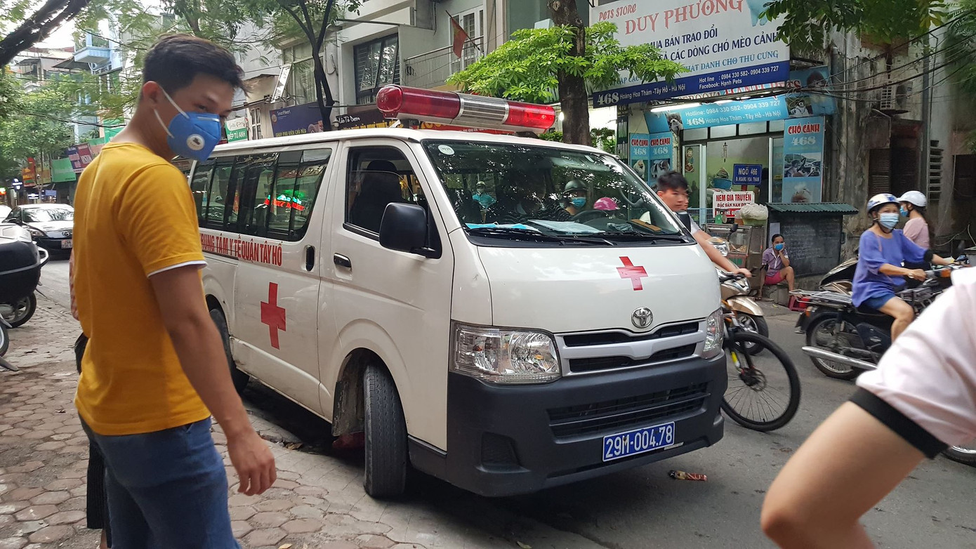 Xe của Trung tâm y tế Tây Hồ đến triển khai công tác phong tỏa khu vực có ca nghi nhiễm COVID -19