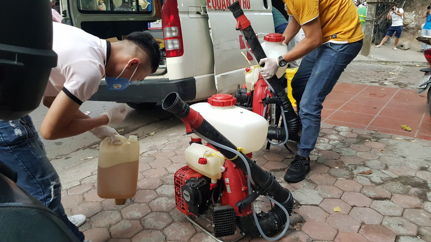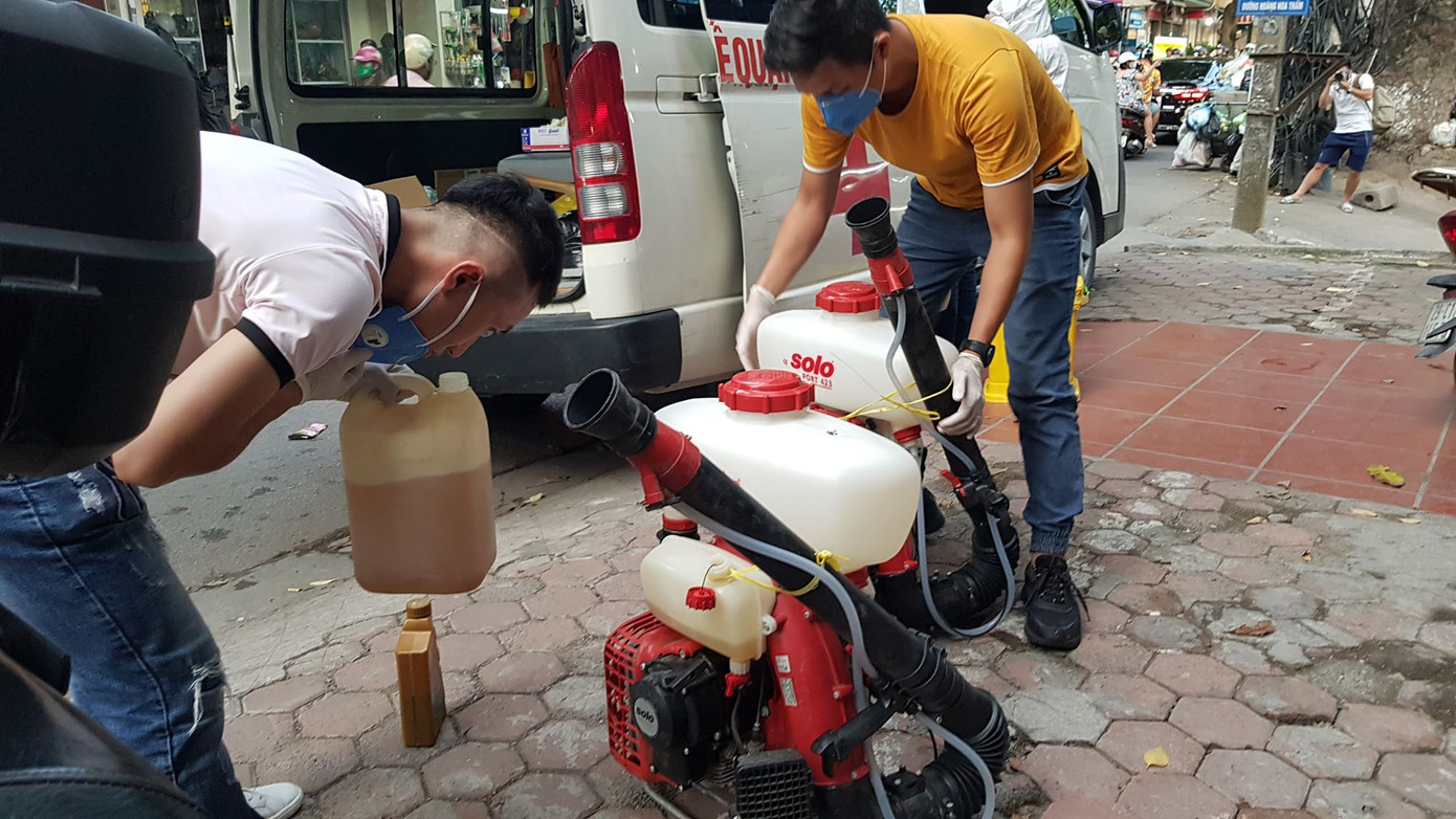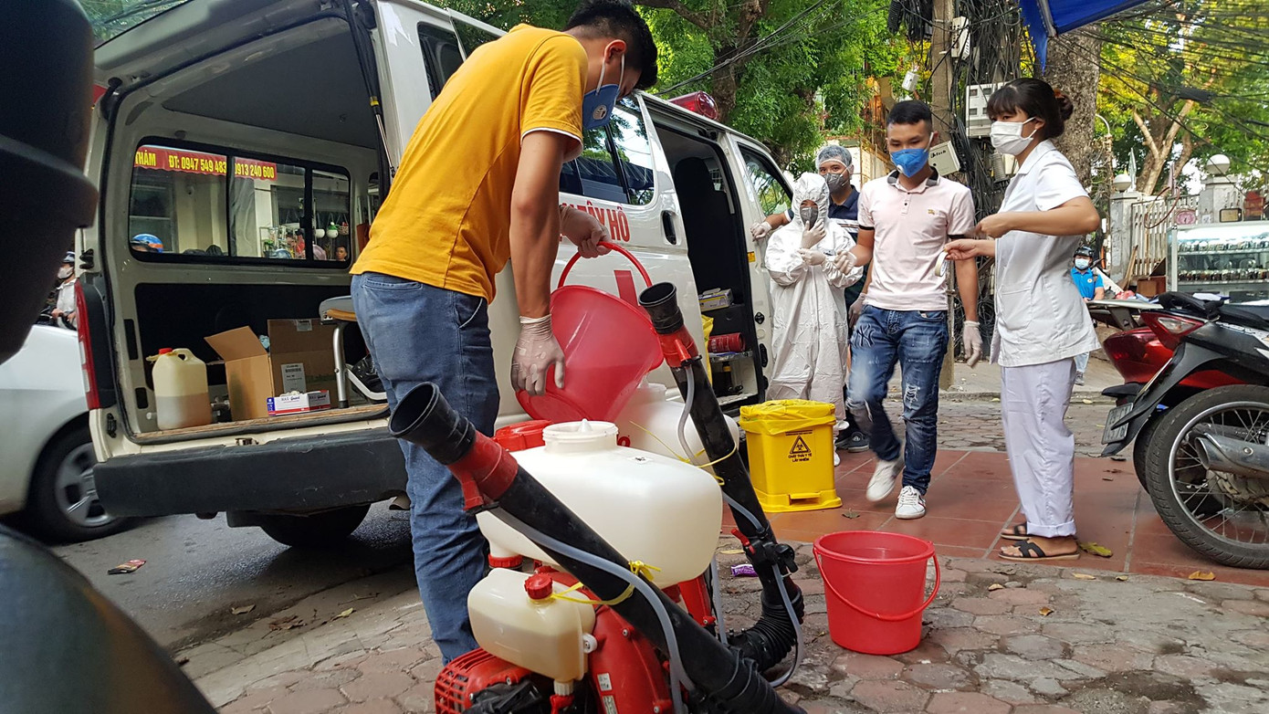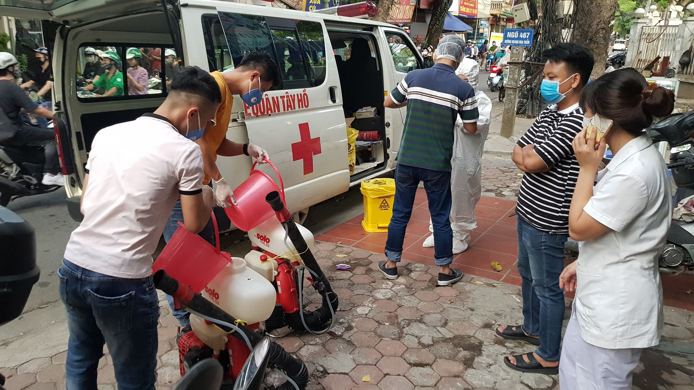 Cơ quan chức năng, y tế chuẩn bị phun khử khuẩn, ngõ 466 Hoàng Hoa Thám