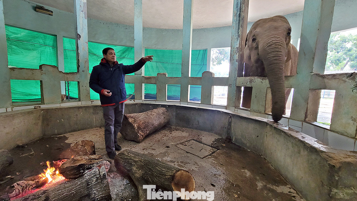 Tại khu nuôi giữ 2 cá thể voi, ông Nguyễn Danh Cường cho biết, khi nhiệt độ xuống thấp, ngoài hệ thống sưởi điện sẽ được tăng cường thêm đốt sưởi bằng củi 24/24 giờ. Ngoài ra, khu vực này cũng đã được che chắn kỹ bằng hệ thống bạt phủ tấm lớn.