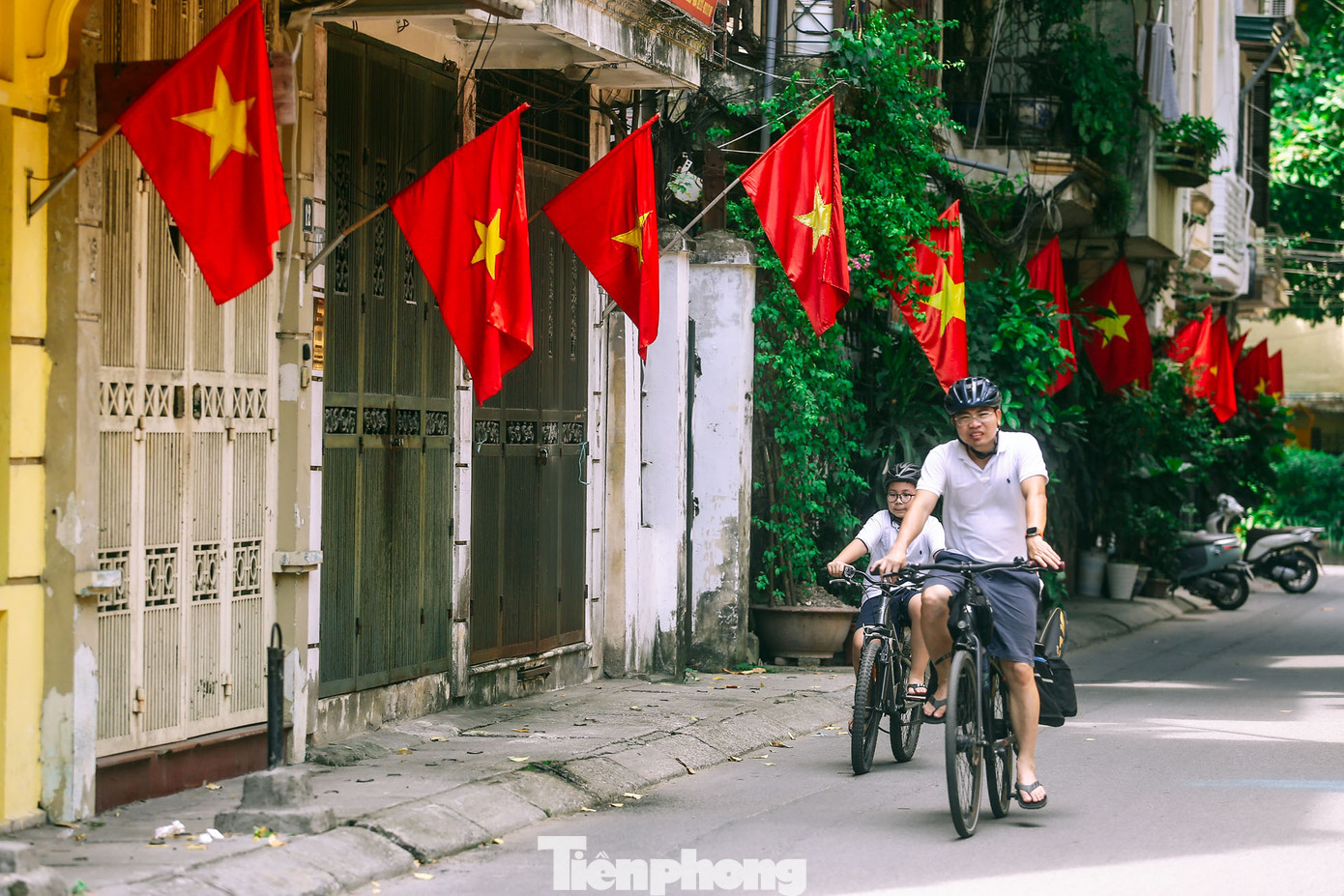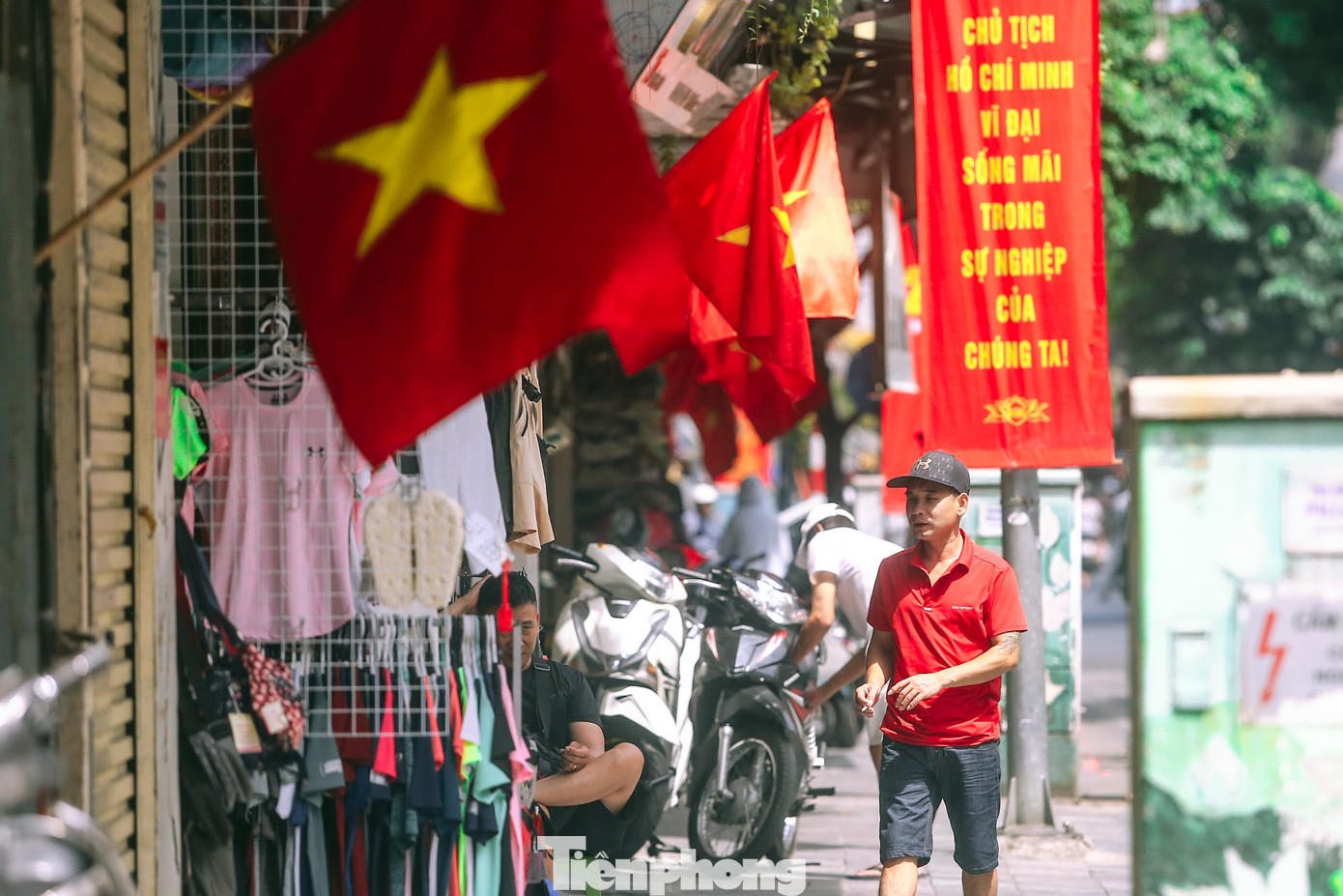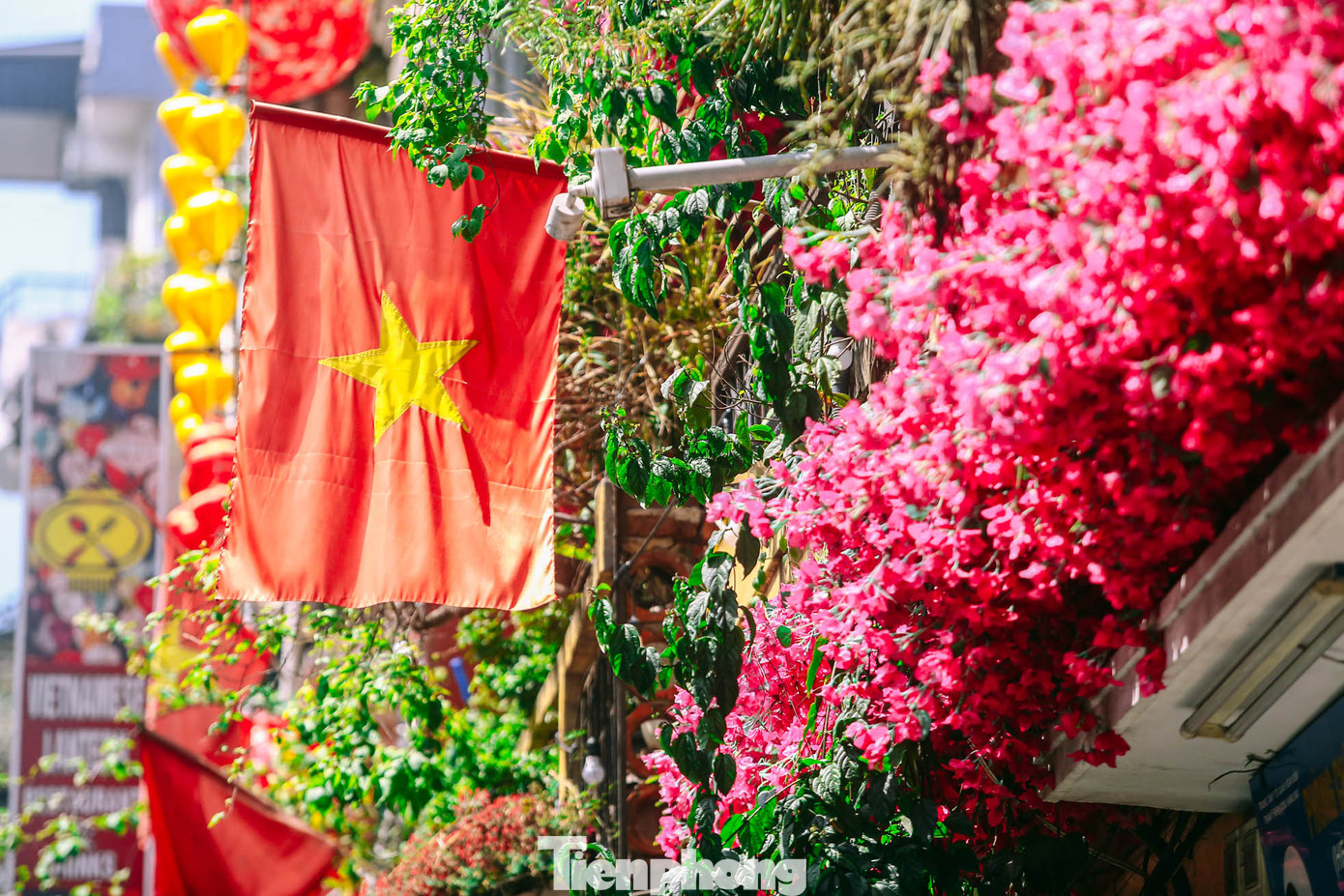 | Từ đường phố đến những ngõ nhỏ ở Hà Nội đều rực rỡ sắc đỏ màu cờ chào mừng kỷ niệm 78 năm Quốc khánh. Trong ảnh: Phố Hàng Bông rực rỡ sắc đỏ màu cờ. |