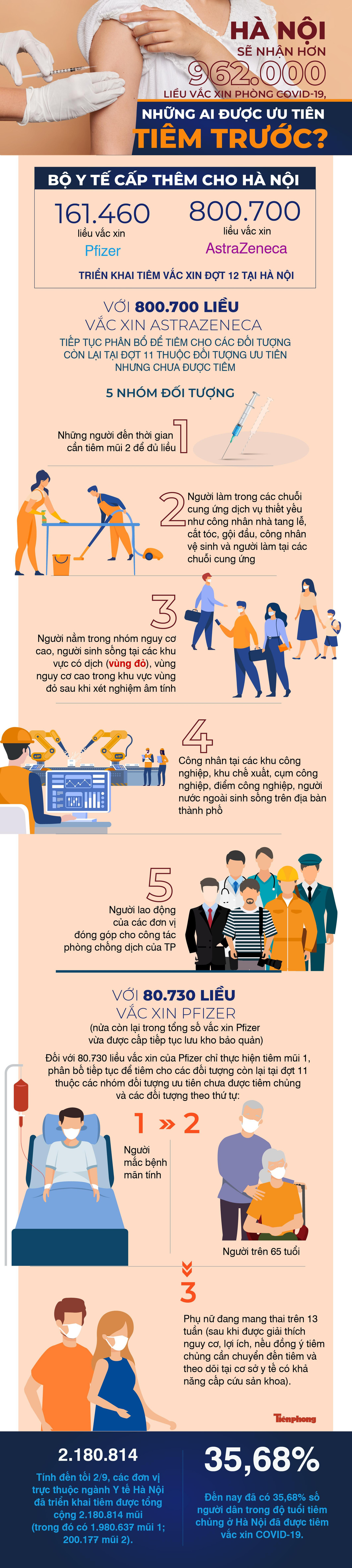 Google News Hà Nội sẽ nhận hơn 962.000 liều vắc xin phòng COVID-19, những ai được ưu tiên tiêm trước?