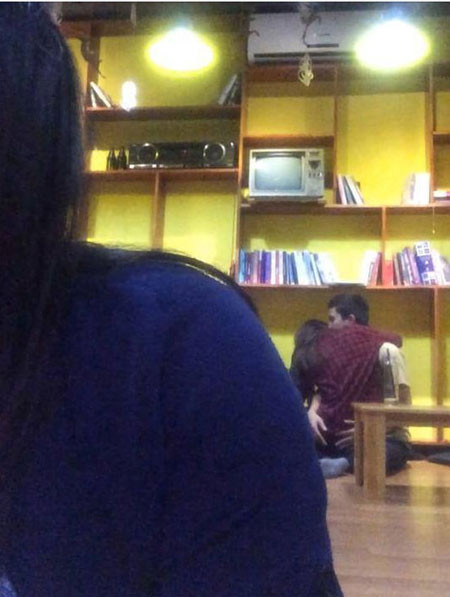 Theo M.A., đây là những hình ảnh cô và các bạn tình cờ ghi lại được tại một quán cafe trên đường Trần Quốc Toản (Hà Nội). Lúc đó khoảng 4 - 5h chiều ngày 9/4, quán có tầm 20 khách. "Mình chia sẻ lên đây để mong các bạn đừng làm những hành động quá lố kiểu này nơi công cộng" - M.A chia sẻ trên trang cá nhân của mình.
