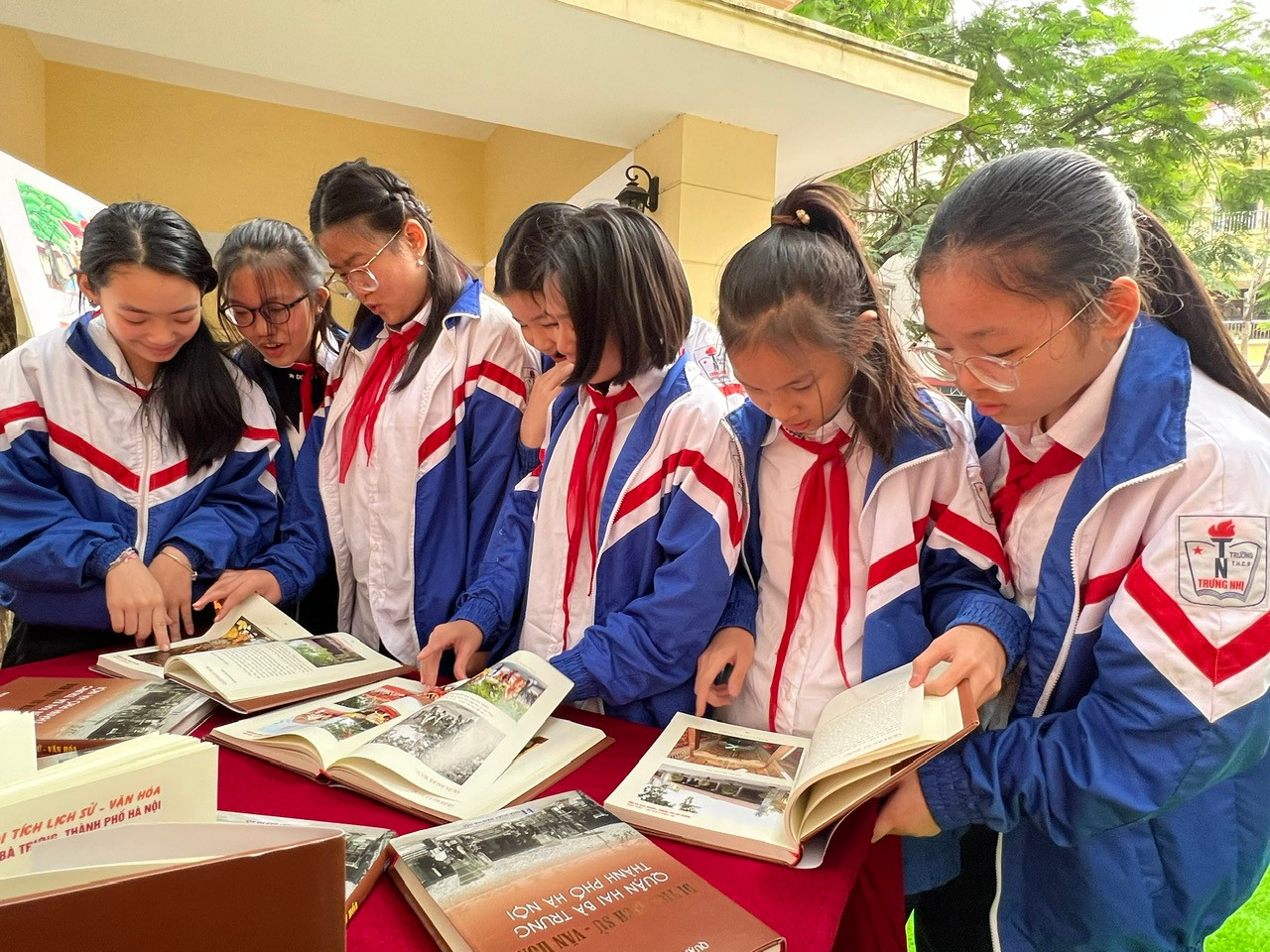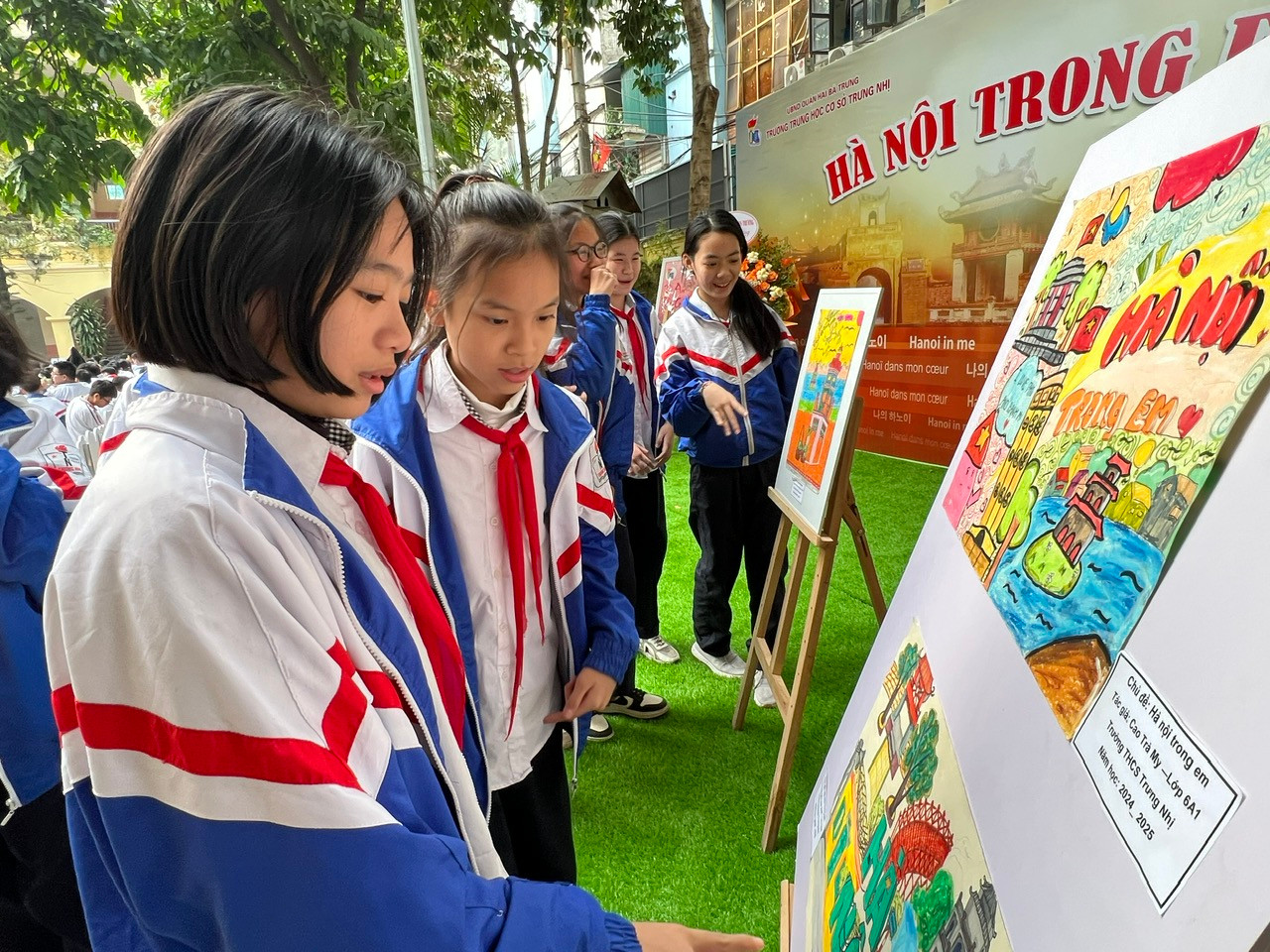 Trong khuôn khổ chương trình, Trường THCS Trưng Nhị tổ chức triển lãm tranh về tình cảm thầy trò, tình yêu quê hương đất nước cũng như danh lam thắng cảnh của Thủ đô Hà Nội; triển lãm sách… thu hút đông đảo học sinh tham quan.