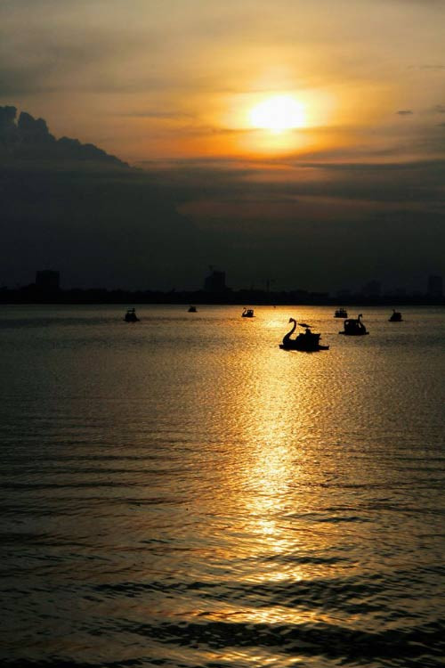 Mặt nước Hồ Tây vàng óng như mật chiều cuối thu Hà Nội
