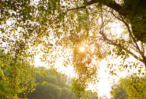 Nắng óng vàng xuyên qua tán lá hàng cây bồ đề trên phố Trần Nhân Tông (Hà Nội) một chiều cuối thu.