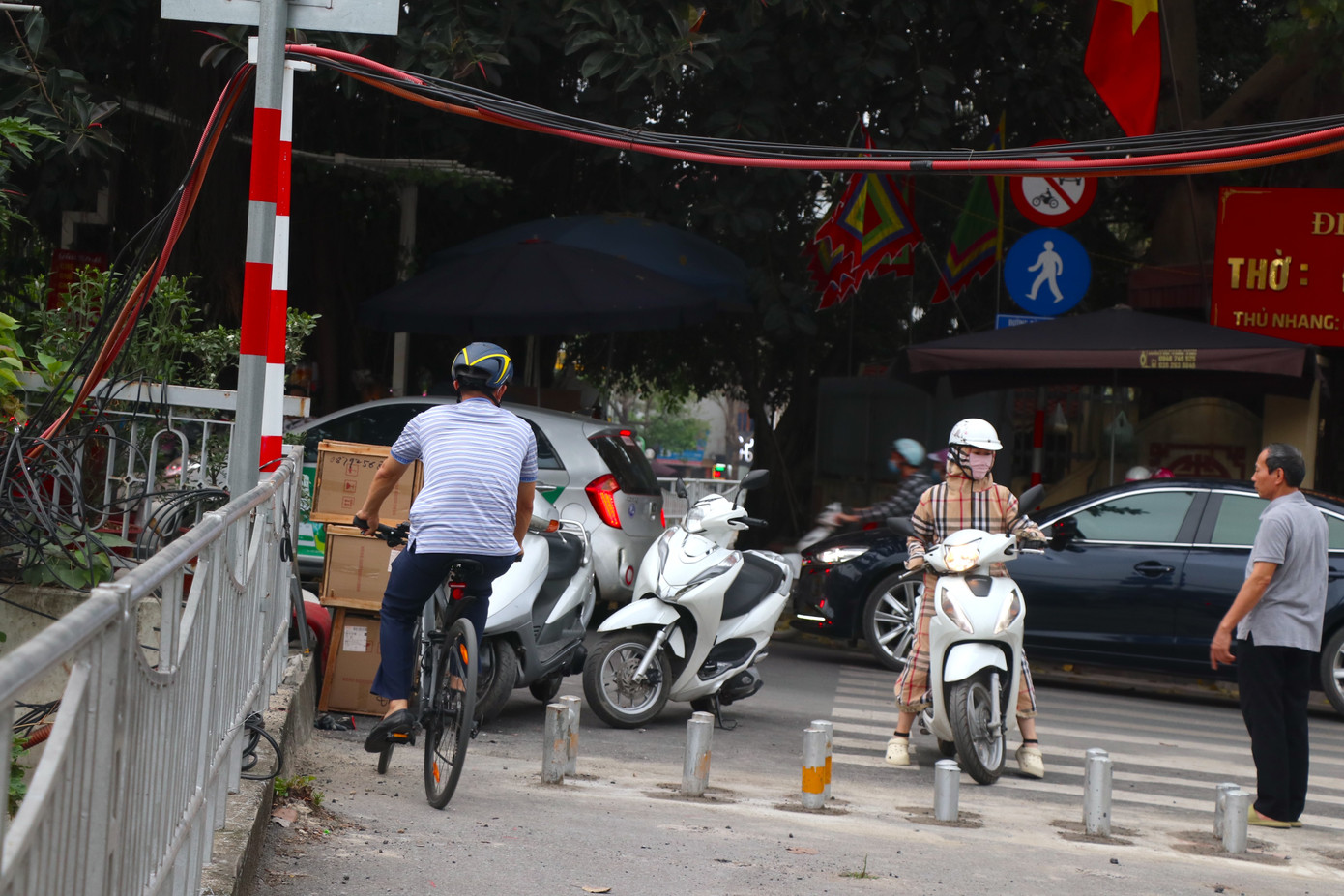 | Tuy nhiên, nhiều đoạn các phương tiện cơ giới khác như xe máy, xe máy điện vẫn đi vào tuyến đường. |