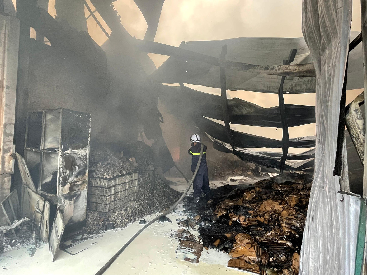 | Bên trong nhà xưởng chứa nhiều hàng hóa dễ cháy. |