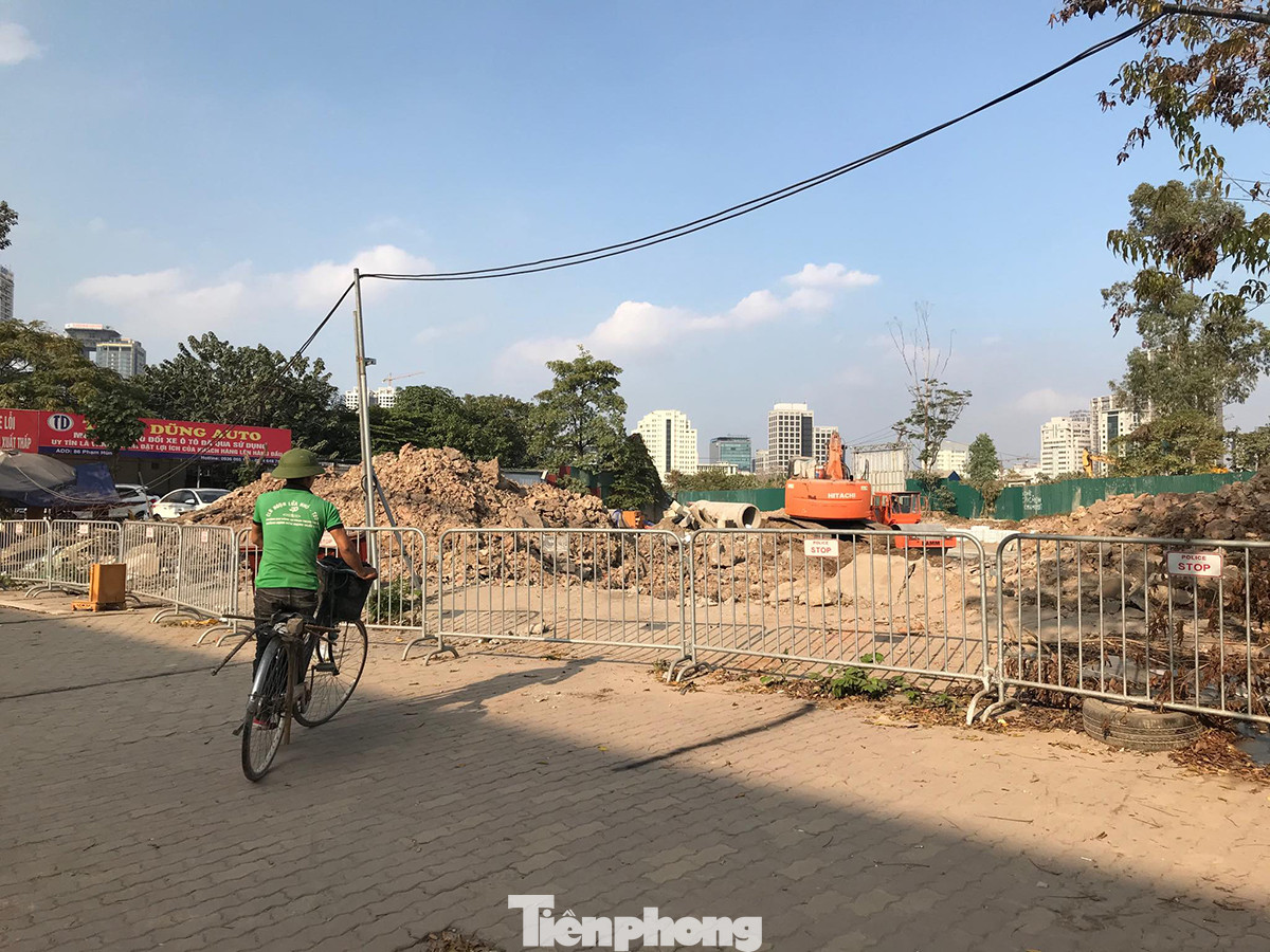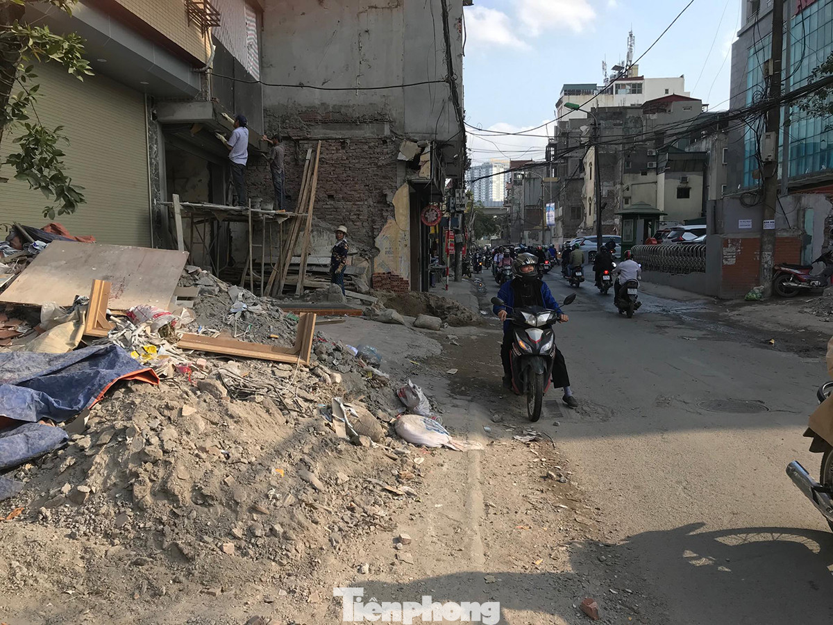 Phố Vũ Trọng Phụng đang giải phóng mặt bằng, nhiều vật liệu xây dựng bừa bộn trên vỉa hè