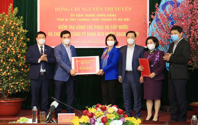Chiều 9/2, Phó Bí thư Thường trực Thành ủy Hà Nội Nguyễn Thị Tuyến đã kiểm tra công tác phục vụ sản xuất, thăm, chúc Tết cán bộ, công nhân, lao động Cty TNHH một thành viên Nước sạch Hà Nội nhân dịp Xuân Tân Sửu 2021.