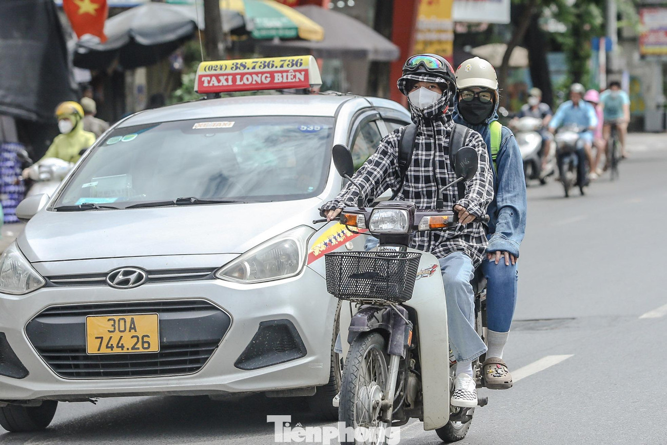 | Sau những đợt mưa lớn, Hà Nội đón nắng nóng kéo dài, người dân Thủ đô ra đường ai cũng trùm kín. |